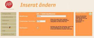 Nach Eingabe der Inserats- und Inserentennummer gelangen Sie in die von Ihnen eingegebenen Daten für das Inserat. Sie können jetzt alle Informationen ändern. Nachdem Sie jeweils den ok Knopf gedrückt haben erscheinen die Daten aus den Bereichen Bezahlung und Kontaktinformationen.