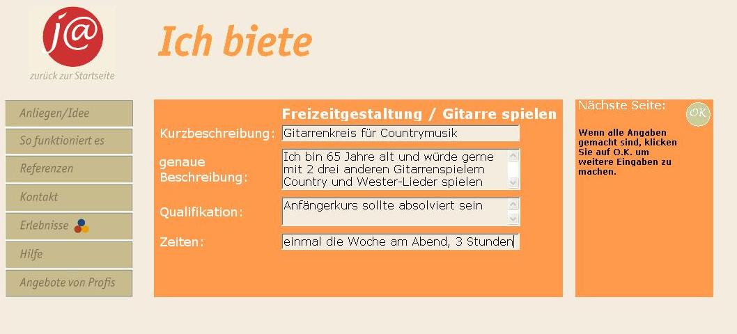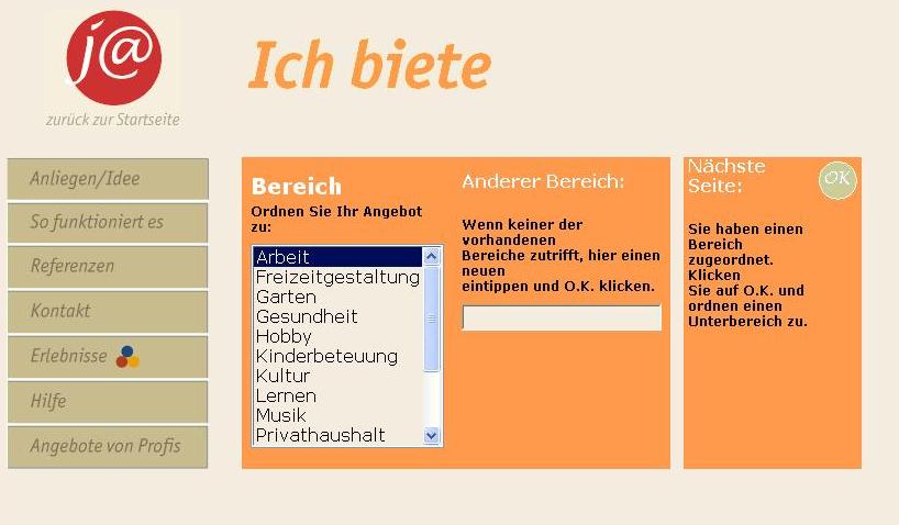 müssen Sie über die Wege „Ich biete – meine Unterstützung“ oder „Ich