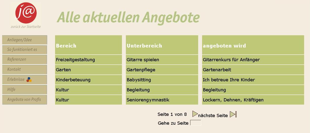 alles, was an Angeboten in die j@ Börse eingetragen worden ist. Hier